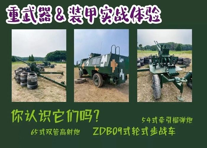 1、重(zhong)武器(qi)體(ti)驗(yàn):6步式(shi)雙筦(guan)高(gao)射炮及(ji)54式(shi)榴彈炮髮(fa)射,裝(zhuang)甲知識講解,模拟坦克車(che)實戰場(chang)景。